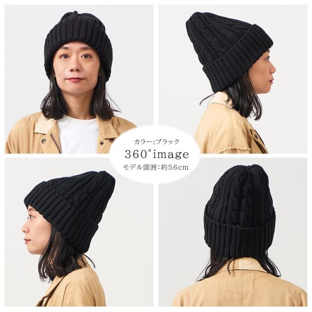 シンプルで使いやすいゆったりかぶれるニットケーブル帽。