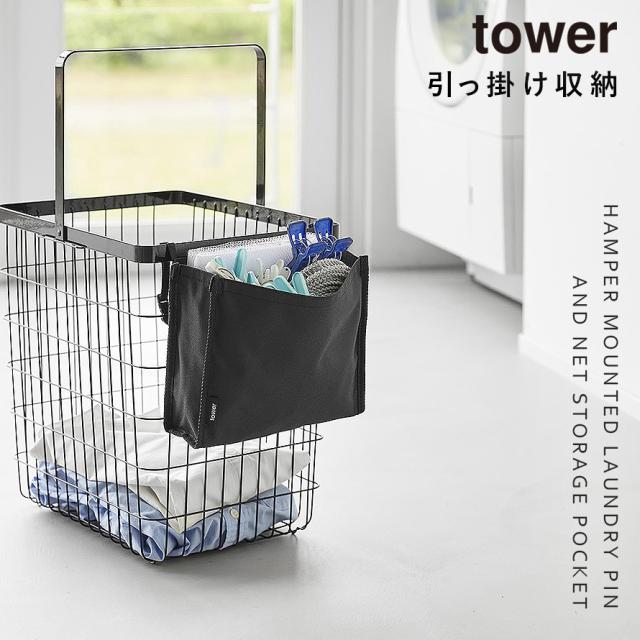 洗濯カゴに取り付けるピンチ&ネット収納ポケット タワー 山崎実業 tower ポケット 収納 吊り下げ 収納ポケット おしゃれ モノトーン ホワイト ブラック 10436 10437
