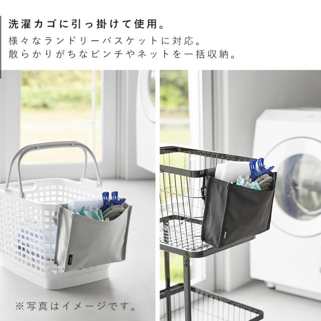 ピンチやネットをひとまとめ!洗濯カゴに取り付けられる収納ポケットです。