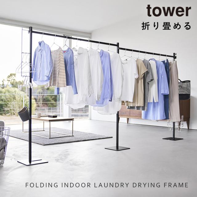 [折り畳み室内物干し タワー 2連]山崎実業 tower 部屋干し 物干し スタンド 室内干し スリム 花粉 黄砂 梅雨 コンパクト おしゃれ 折りたたみ モノトーン yamazaki 公式 ホワイト ブラック 10266 10267 メーカー直送