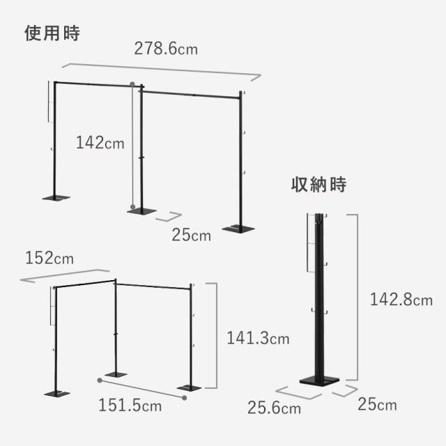 ■サイズ:使用時/幅278.6×奥行25×高さ142cm、収納時/幅25.6×奥行25×高さ142.8cm