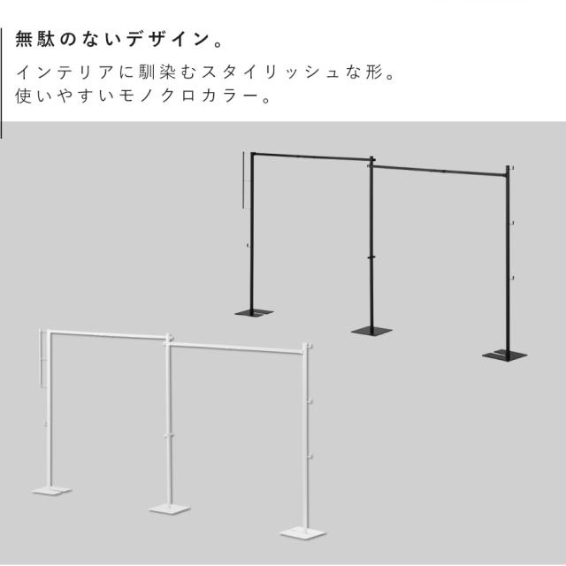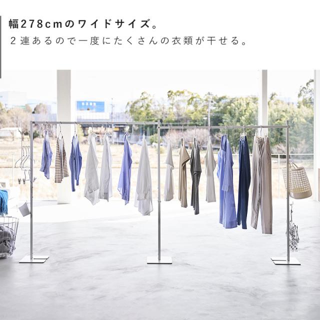 幅278cmのワイドサイズで、一度にたくさんの衣類を干せます。