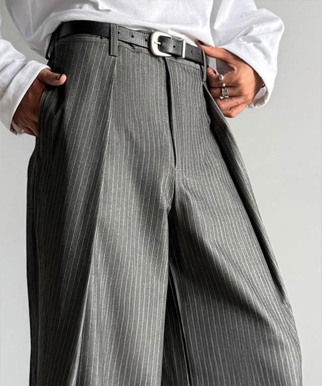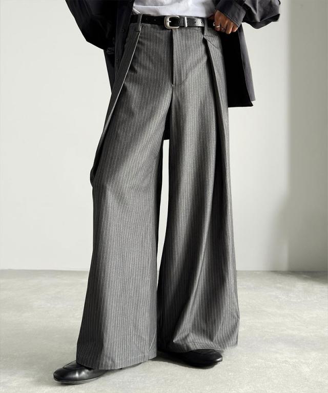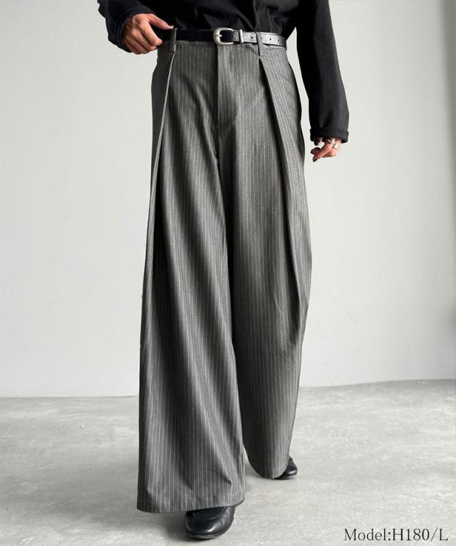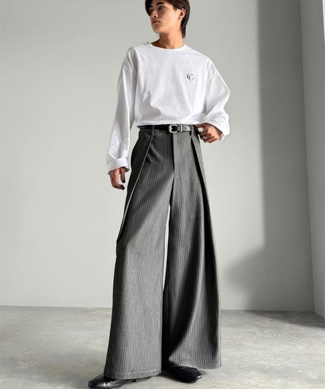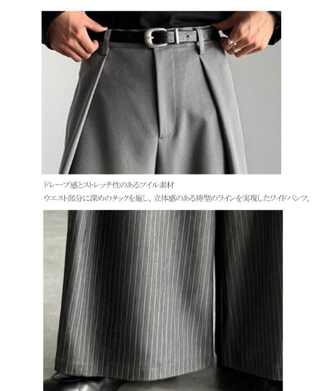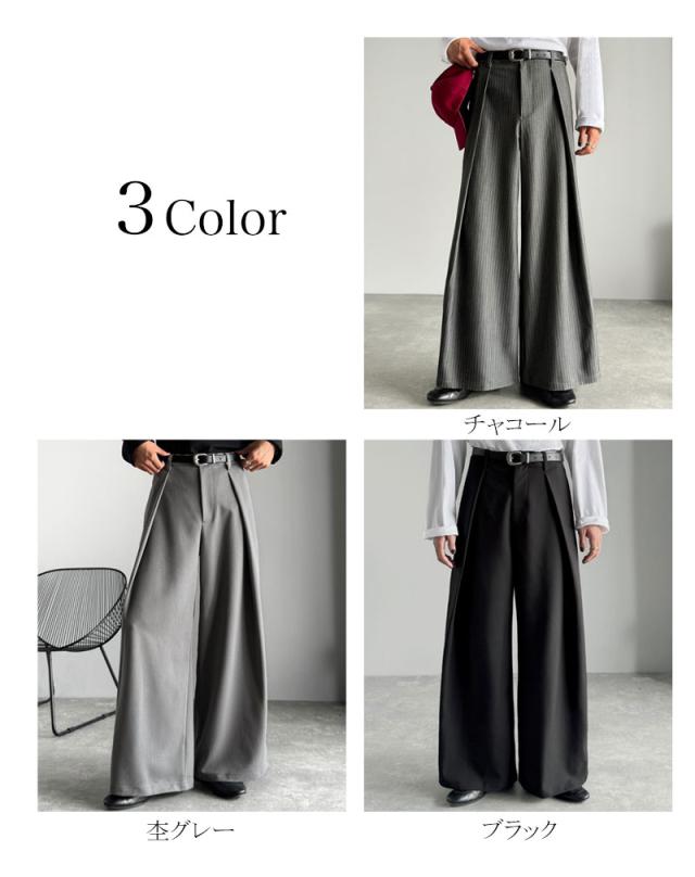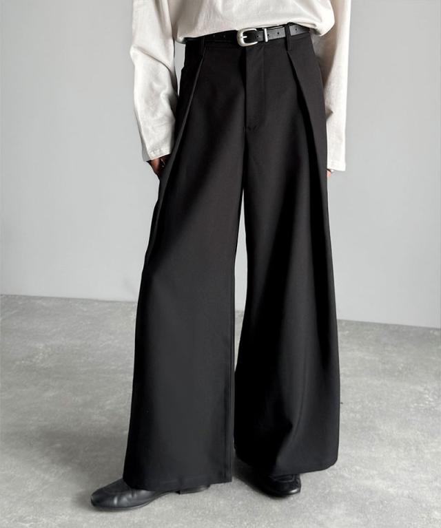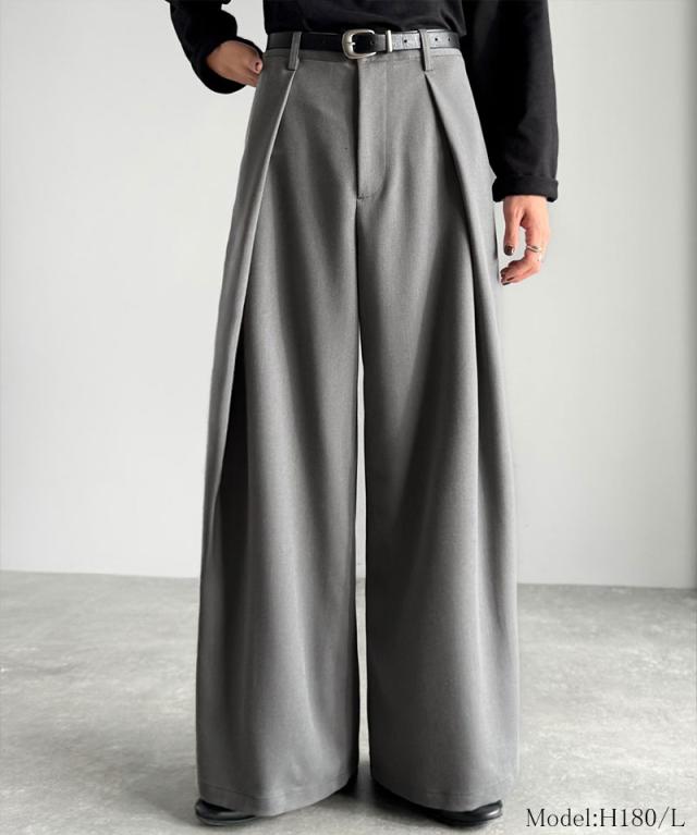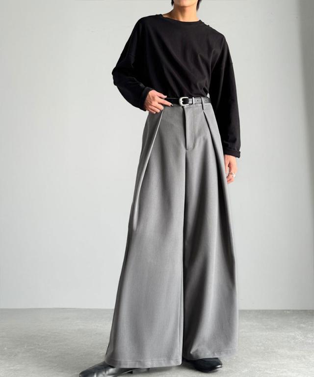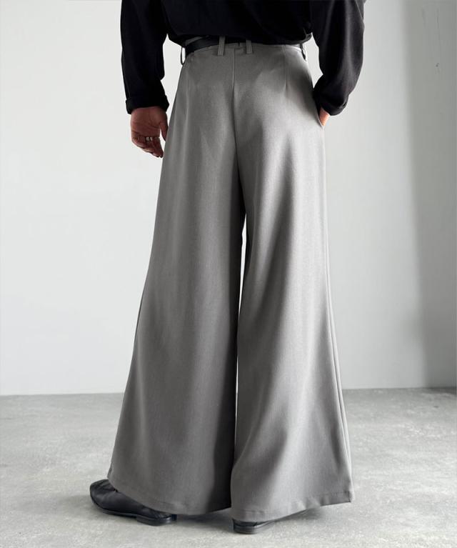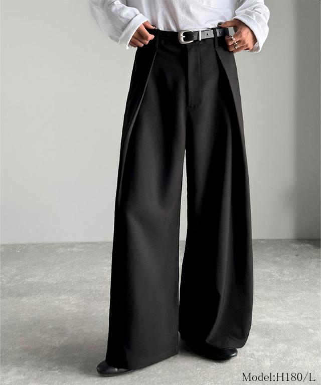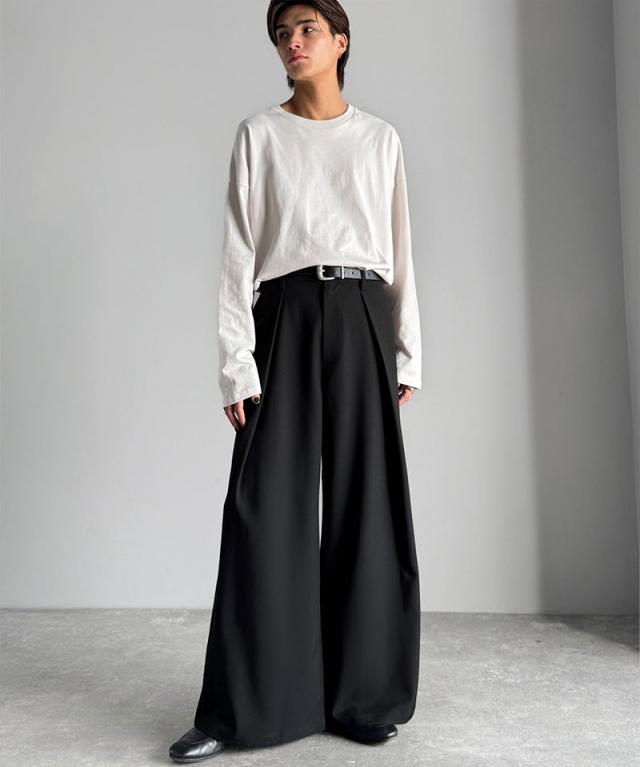 ウエスト部分に深めのタックを施し、立体感のある袴型のラインを実現したワイドパンツ。