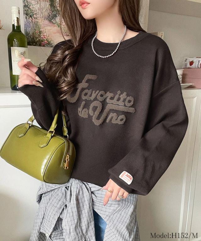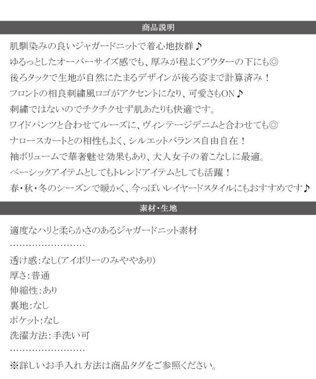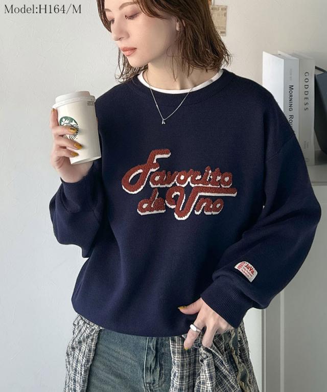 クラシカルエルフ冬新作 java ジャバコラボ トップス ニット レディース サガラ刺繍風 ロゴ コクーンニット 大人カジュアル 後ろタック ジャガード オーバーサイズ 着心地抜群 可愛らしさ ベーシック トレンド レイヤード 大きいサイズ 2025aw jv1050313
