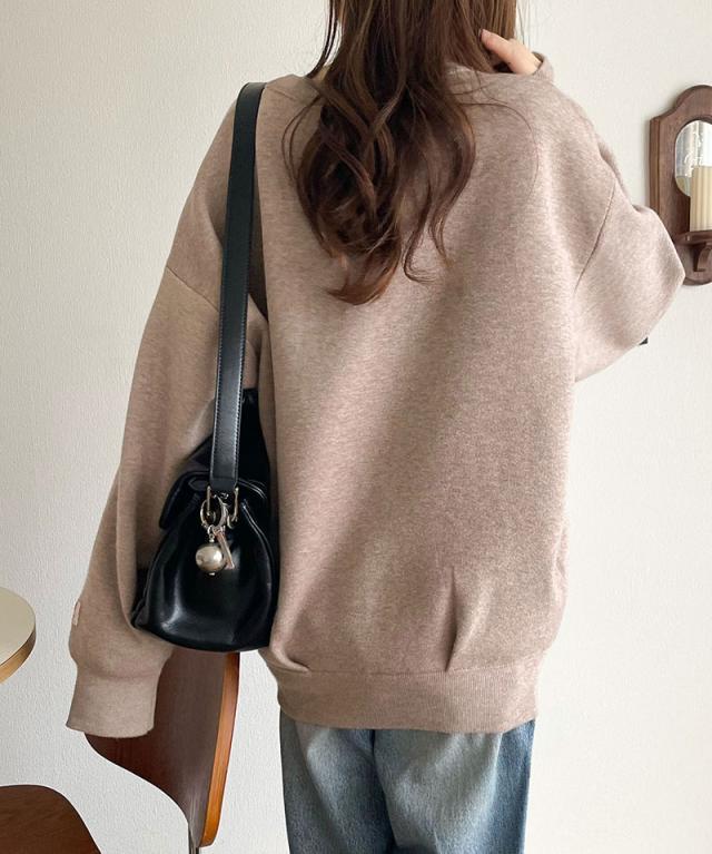 ゆるっとしたオーバーサイズ感でも、厚みが程よくアウターの下にも◎