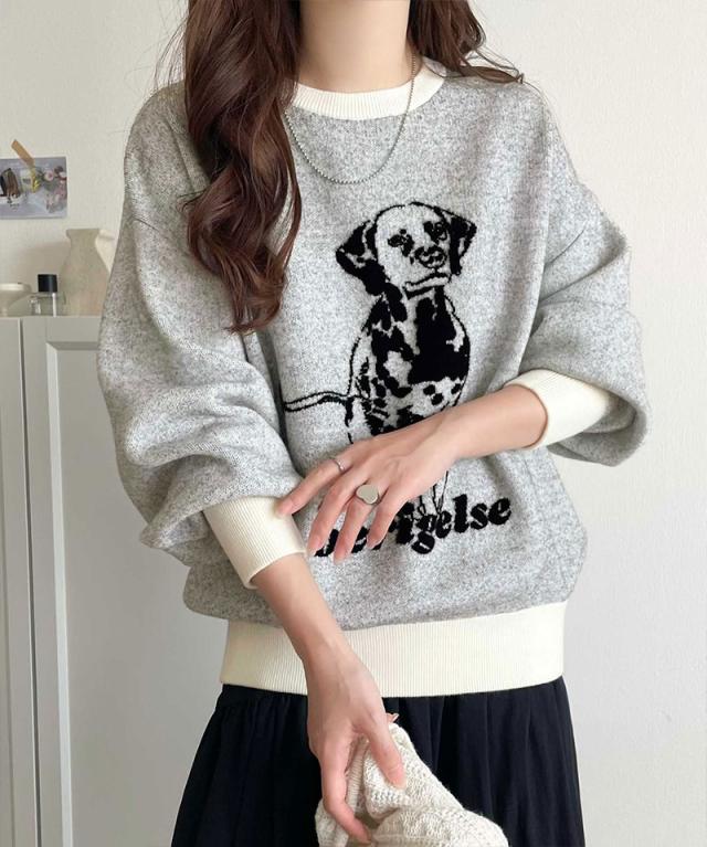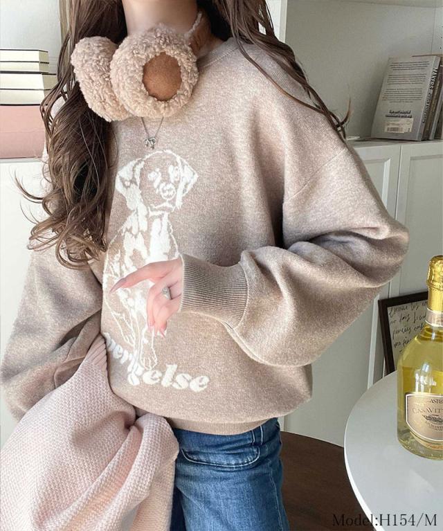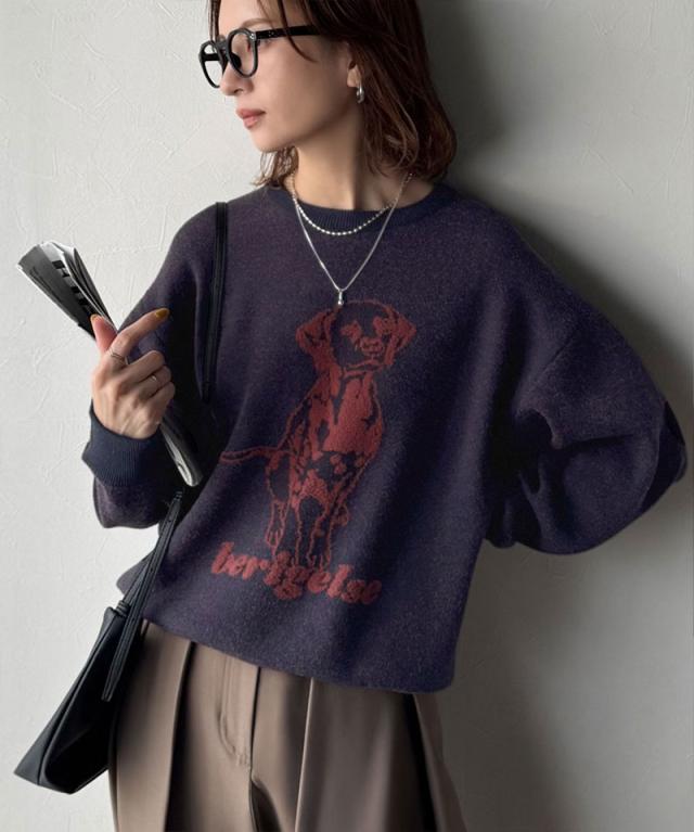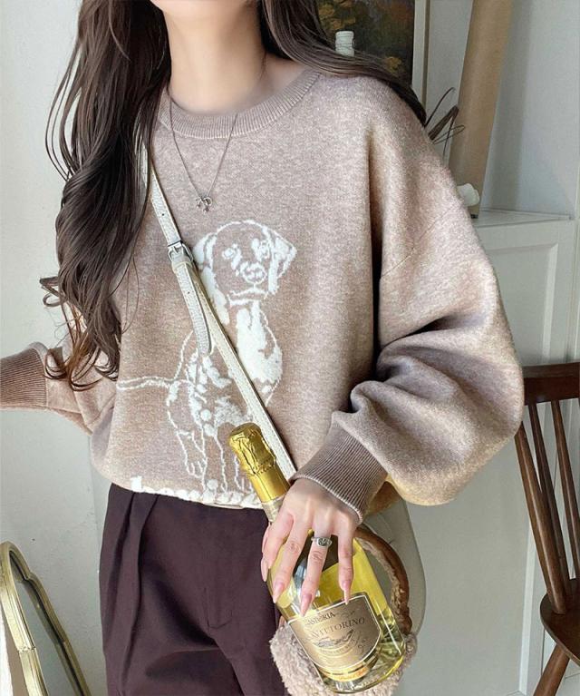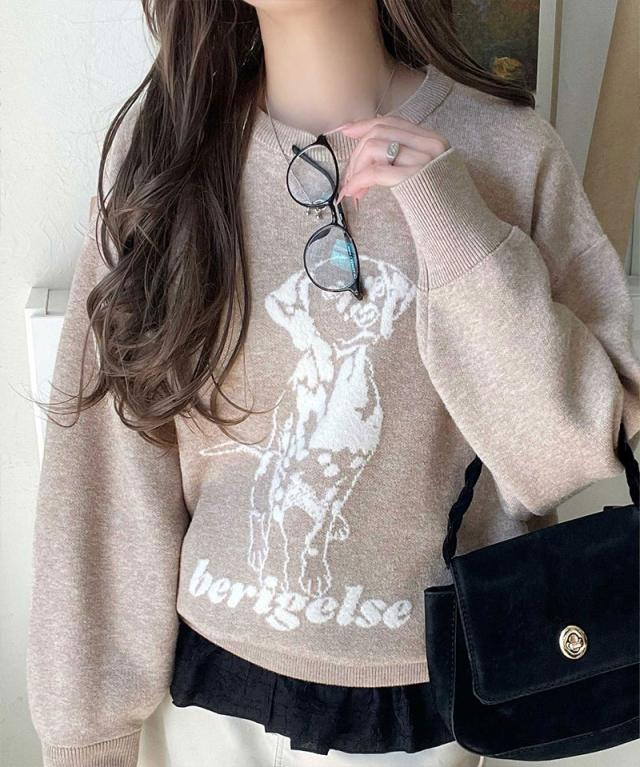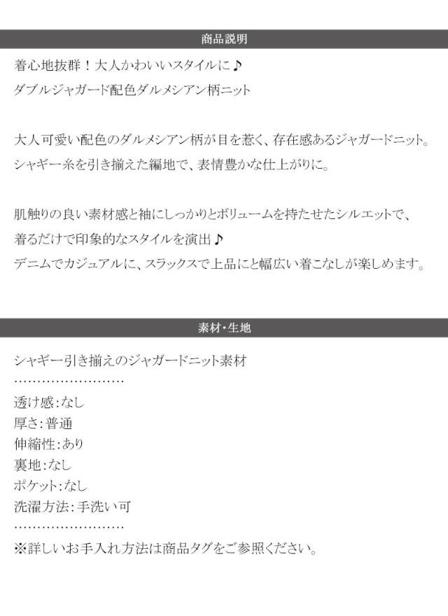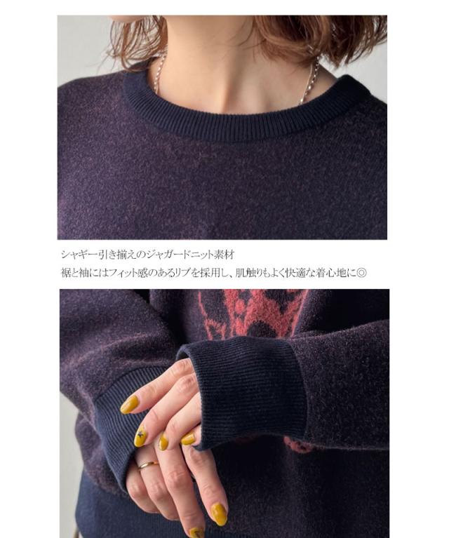 クラシカルエルフ冬新作 トップス ニット レディース 着心地抜群 ダブル ジャガード 配色 フロント ダルメシアン柄 プルオーバー 大きいサイズ 2025aw ce1050342