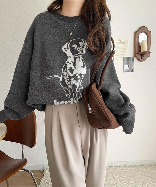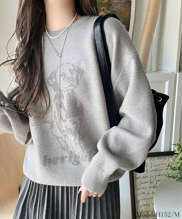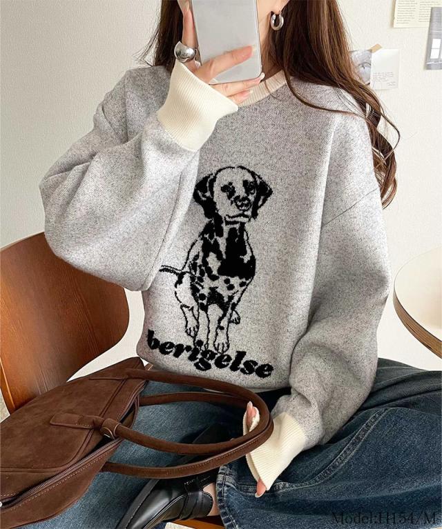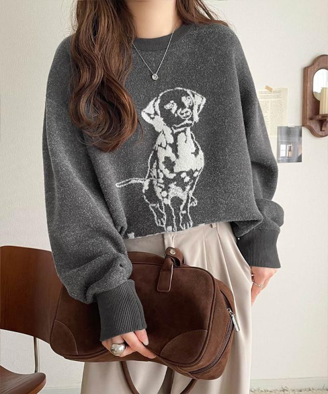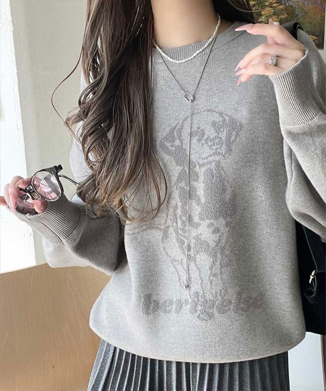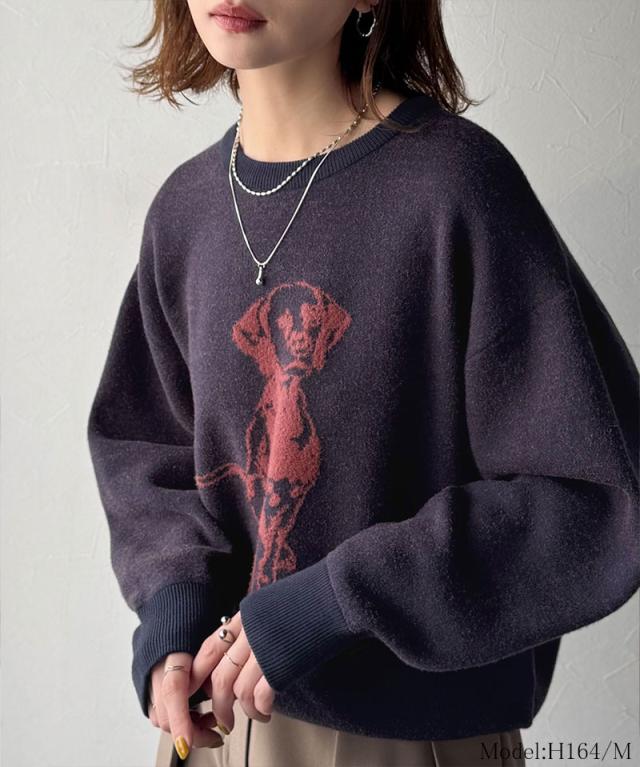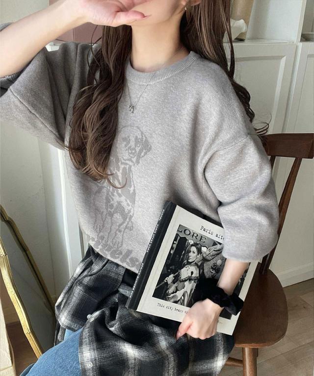 クラシカルエルフ冬新作 トップス ニット レディース 着心地抜群 ダブル ジャガード 配色 フロント ダルメシアン柄 プルオーバー 大きいサイズ 2025aw ce1050342