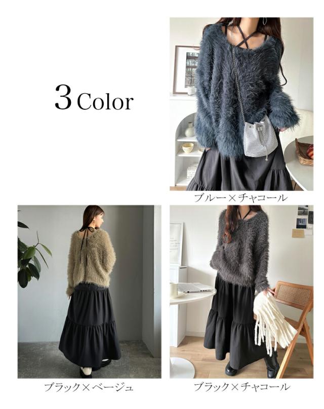 クラシカルエルフ冬新作 ワンピース レディース シャギー ニット × ティアード キャミ ワンピ セットアイテム 着回し ロングシーズン 大きいサイズ 2025aw ce1260511