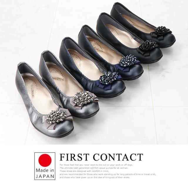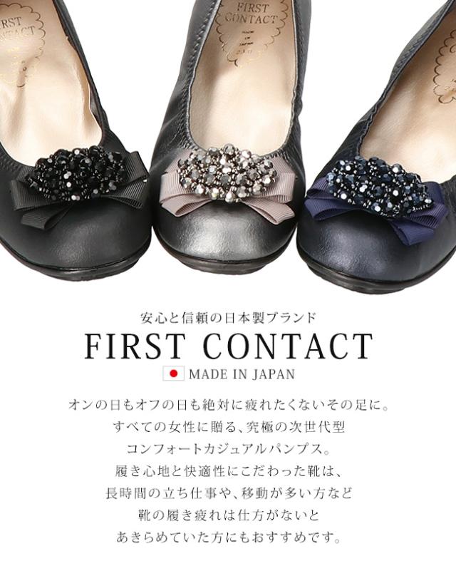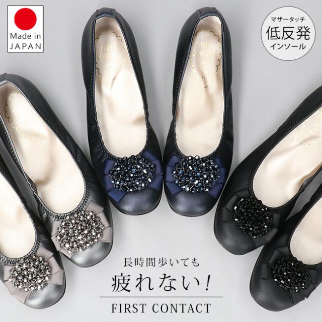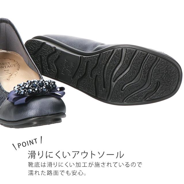 ファーストコンタクト パンプス 疲れない 痛くない 歩きやすい 脱げない 低反発 軽量 柔らかい ローヒール おしゃれ ビジュー ラウンドトゥ 39803 レディース コンフォートパンプス 日本製 通勤 仕事 バレエシューズ 靴
