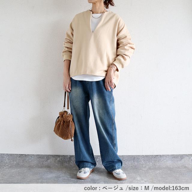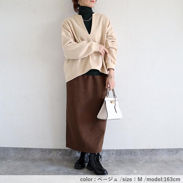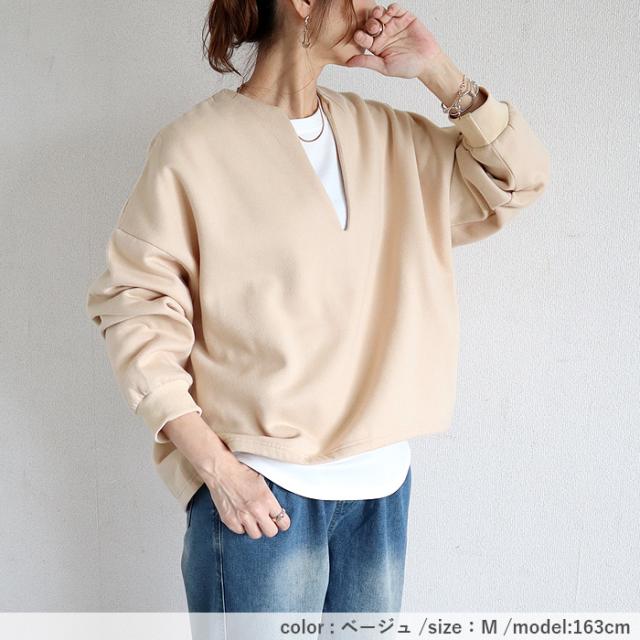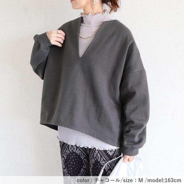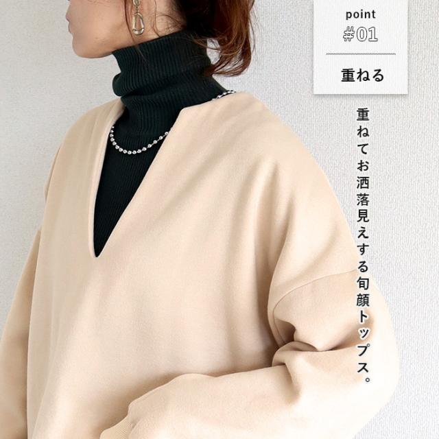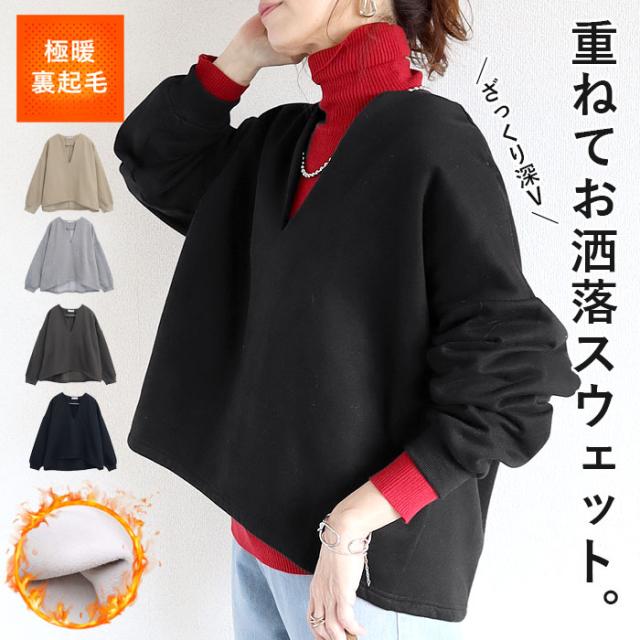 トップス レディース トレーナー スウェット プルオーバー 黒 秋 冬 おしゃれ 長袖 無地 コットン混 綿混 Vネック 裏起毛 レイヤード 重ね着 極暖 暖か 保温 深V お尻が隠れる 体型カバー シンプル カジュアル 40代 30代 50代 60代 大きいサイズ ゆったり 大人 カジュアル かわいい SALE セール uricca ウリッカ うりっか