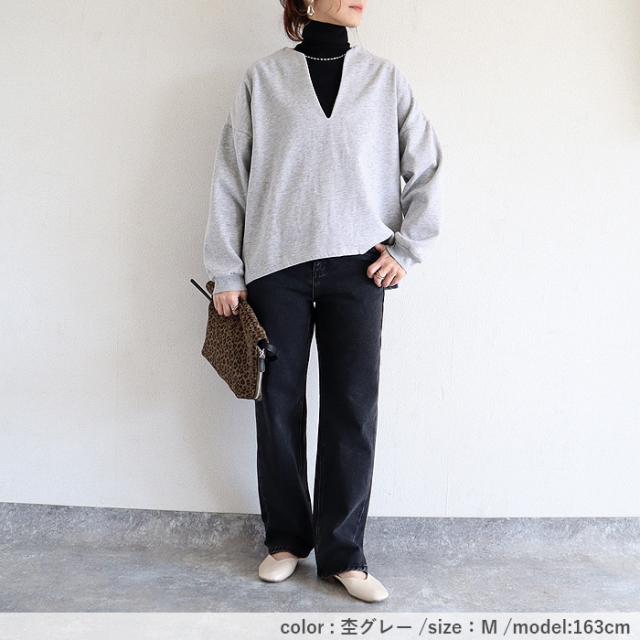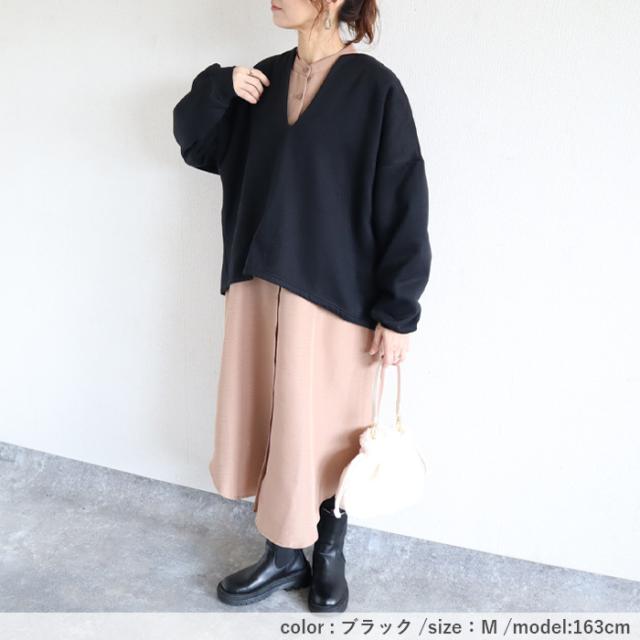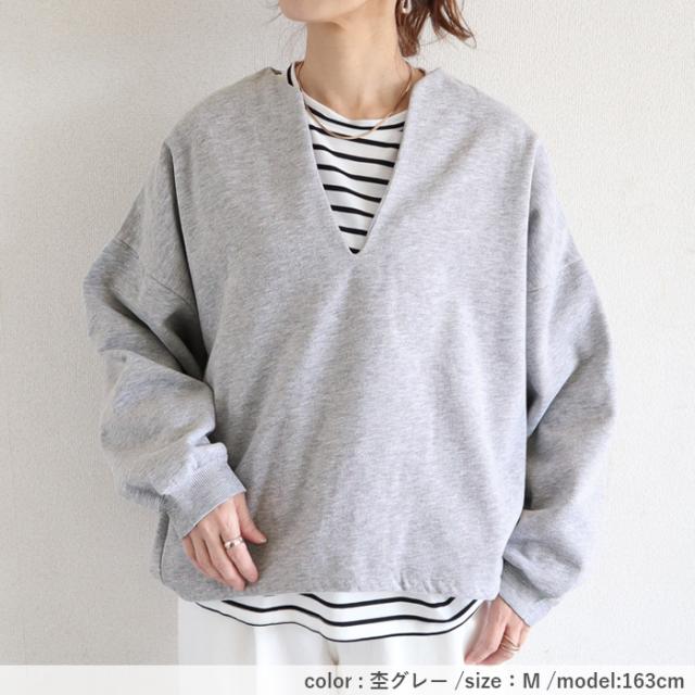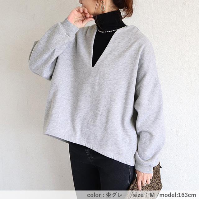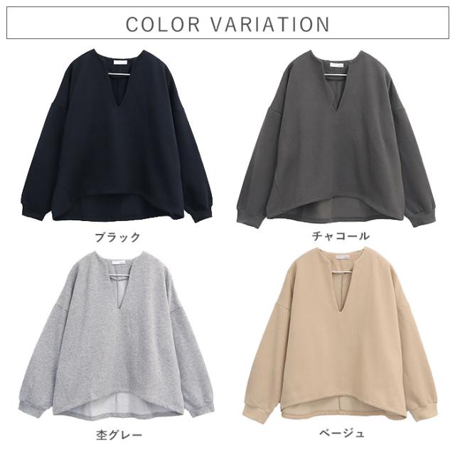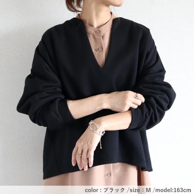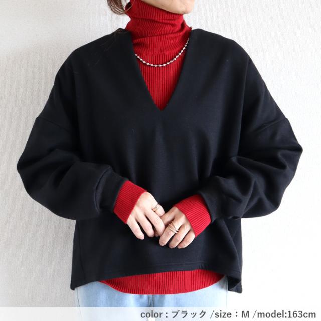 秋新作 トップス レディース スウェット プルオーバー 黒 秋 冬 おしゃれ 長袖 無地 コットン混 綿混 Vネック 裏起毛 レイヤード[郵3]^t1131^ ★