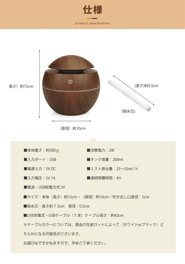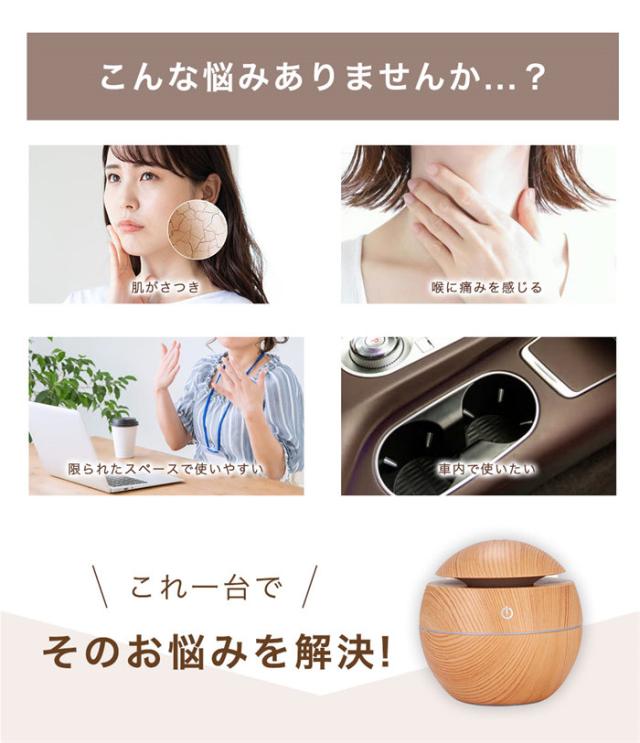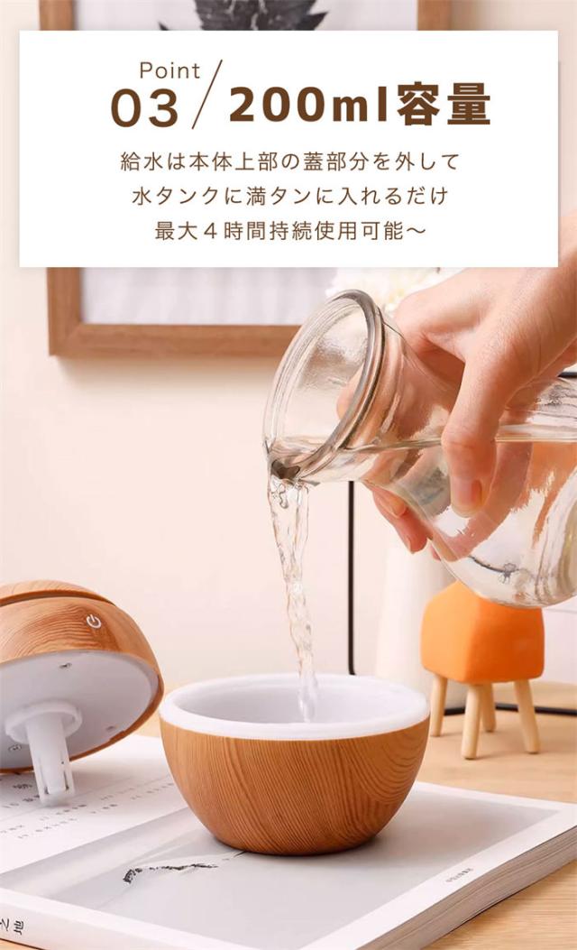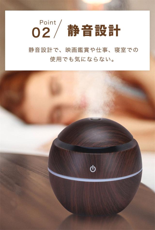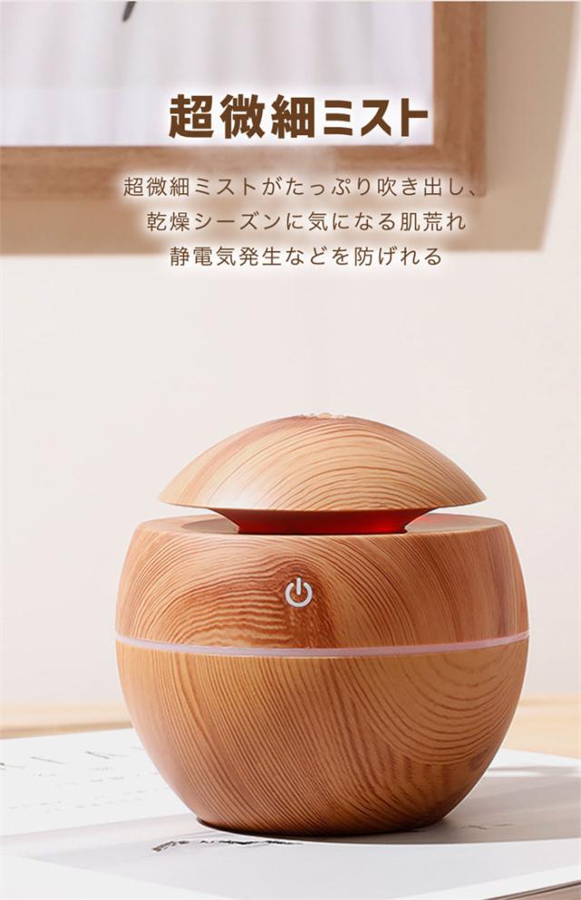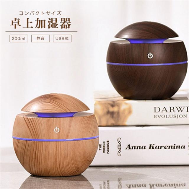 加湿器 ミニ加湿器 超音波加湿器 ウッド調 木目調 200ml USB アロマディフューザー 空気加湿器 卓上 USB 加湿器 卓上加湿器 オフィス 静音 小型 LED夜間ライト カラフル 寝室 オフィス おしゃれ かわいい 乾燥対策 ディフューザー