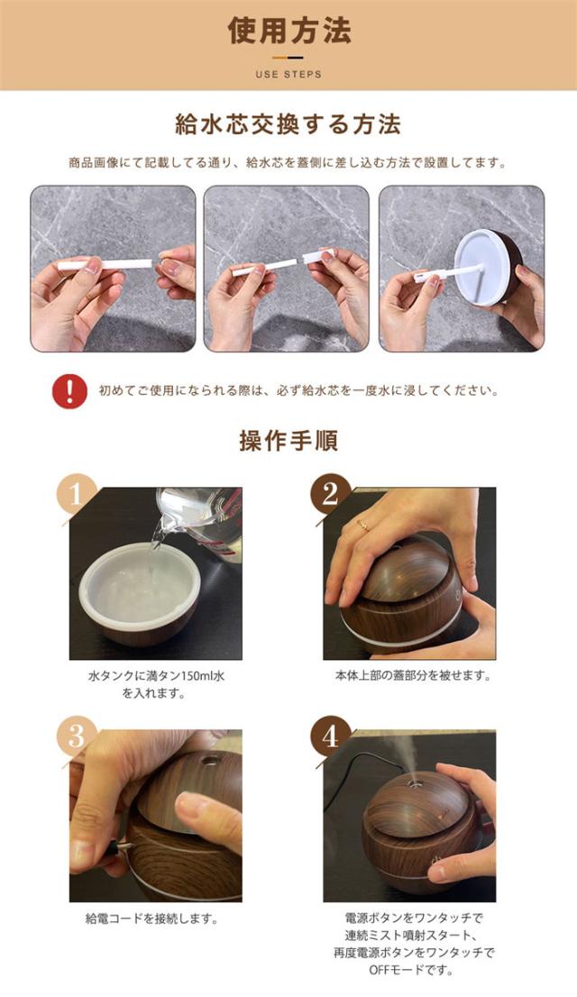 ■注意点:初めてご使用になられる際は、必ず給水芯を一度水に浸してからご利用お願いします。