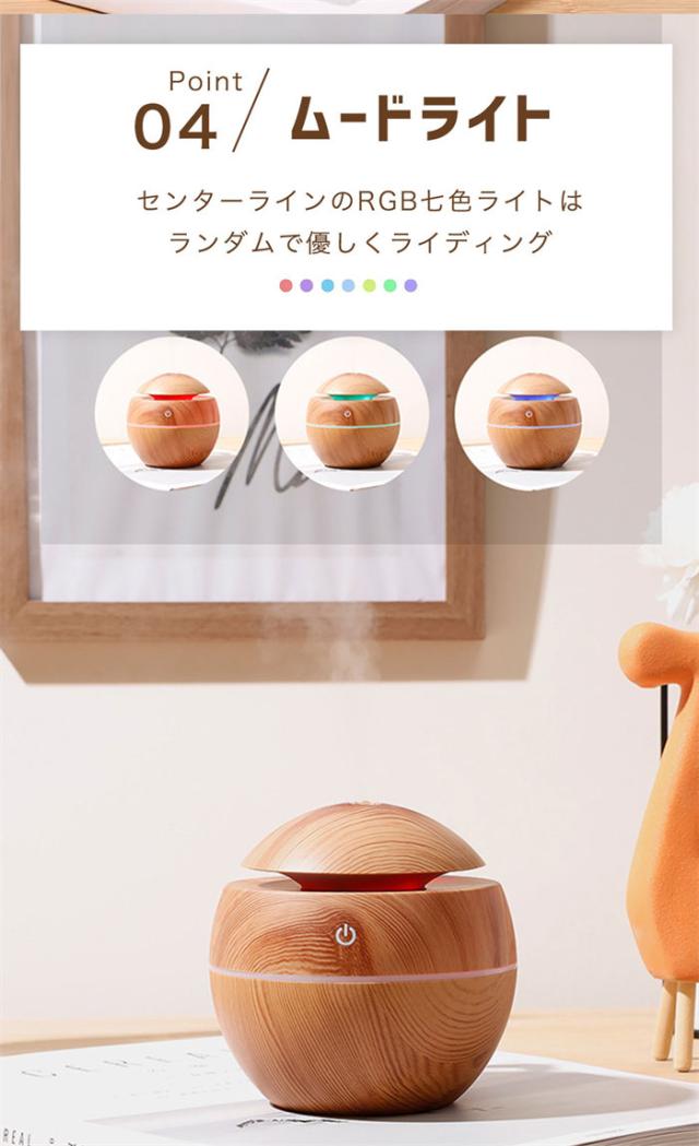●木目調デザイン加湿器 - ムードライト&アロマ機能搭載