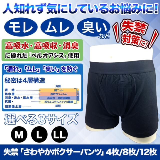 快適生活 失禁「さわやかボクサーパンツ」12枚 尿漏れ対策 漏れない 下着 メンズ M L LL 汗 尻汗 残尿 ズボンへのシミ防止 エチケット