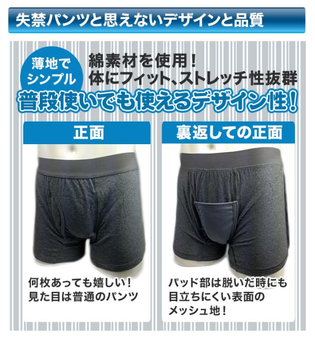 見た目は普通のボクサーパンツなので、もしもの時も人前で脱げるため、周りにも気づかれる心配もありません。