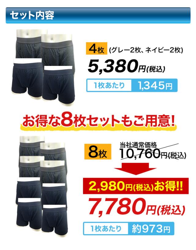 4枚:(グレー2枚、ネイビー2枚) 8枚:(グレー4枚、ネイビー4枚) 12枚:(グレー6枚、ネイビー6枚) |
