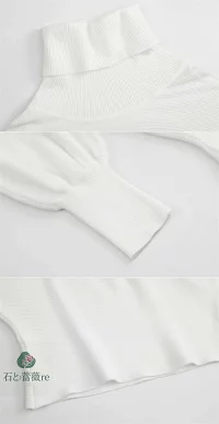 - ハイネックが首元をすっきり見せ、通勤服としても失礼ありません。