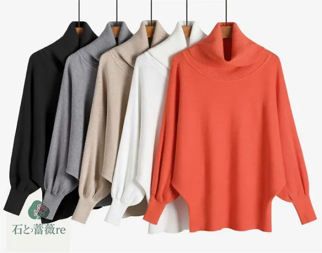セーター 綿 ドルマンスリーブ レディース 新作 バルーン袖 長袖 ニット 無地 オフタートル トップス 厚手 秋 冬 ニットセーター プルオーバー ハイネック ゆったり 大人 可愛い お洒落 体型カバー エレガント 30代 40代 50代 可愛い 通勤 OL オフィス 着回し 送料無料