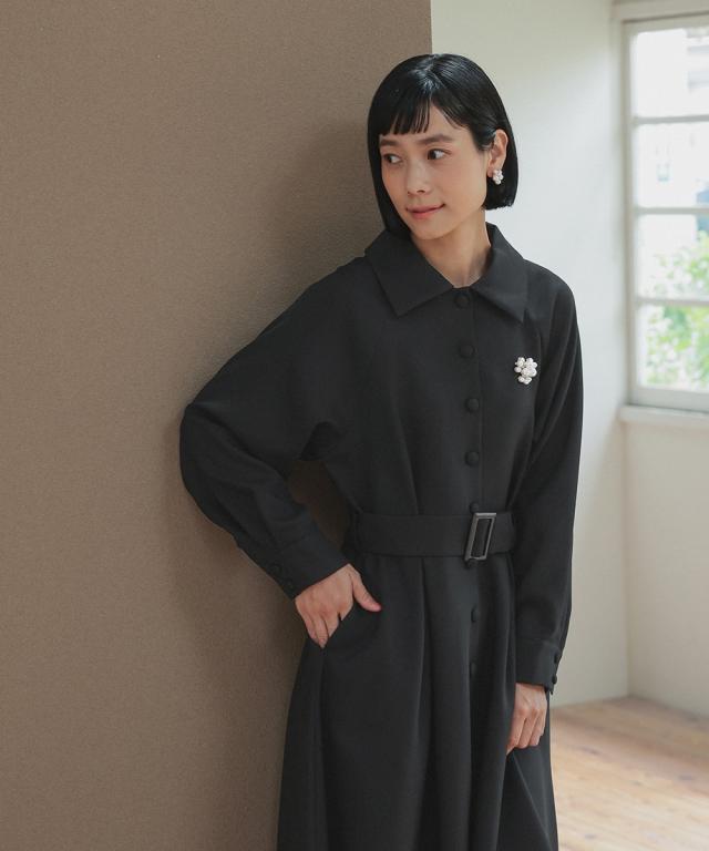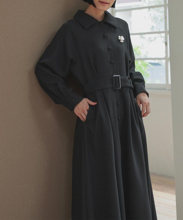【入学式・卒業式・フォーマル】ベルテッドラグランコートワンピース(共布ベルト・ブローチ付) 〔Neina〕