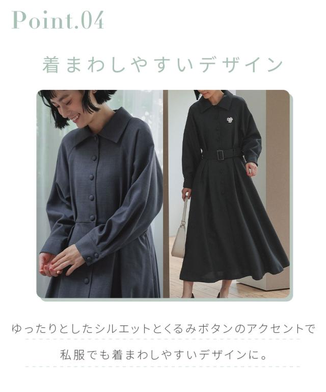 【Neina(ネイナ)】〜for Ceremony Formal〜 『自分らしく丁寧に大切な日を装う。』 大切な日だからこそ、自分らしい装いを持って、丁寧に感謝で送りたい <自分らしく丁寧な装いを大切にする方へ> 縛られたカタチではなく、「想い」が人と人をつなぐ シーンにもテイストにも年齢にも縛られない自由な着こなしを実現する新しいセレモニーフォーマル。 こだわりポイント タックフレアシルエットが可愛いベルテッドワンピース コート風シルエットで、上品できちんと感のある雰囲気を演出 ウエストタック入りで、ふんわりシルエットを演出 共布ベルトで、ウエストマークスタイルが完成 小物収納できるポケット付き 取り外しできるパール調ブリーチ付 ドルマンスリーブデザインで、程よい抜け感をプラス ロング丈シルエットで、上品な印象に格上げ 洗濯機で洗えるので、お手入れラクチン セレモニーシーンだけでなく、通勤・結婚式・参観日・七五三・普段使いなど幅広いシーンに対応できるワンピースです。 体型カバーポイント スカートはロング丈シルエットで、気になる膝見えをしっかりカバー 対応着用シーン 【入学式】【卒業式】【参観日】【七五三】【結婚式】【お呼ばれ】【食事会】など様