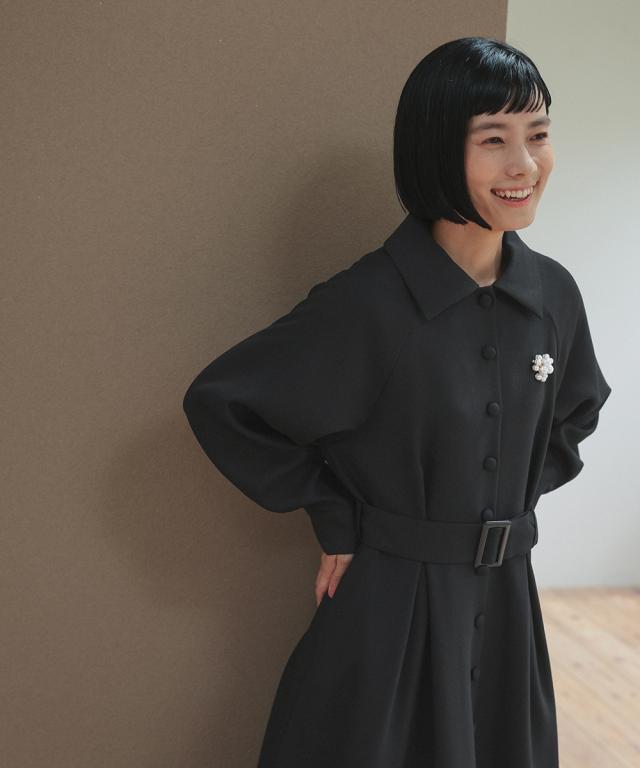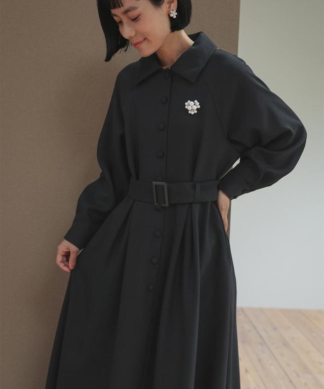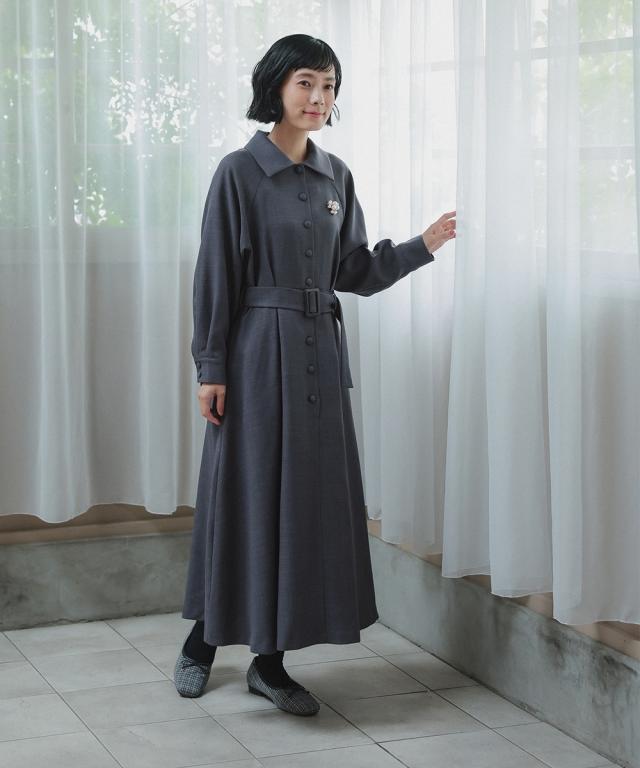 【入学式・卒業式・フォーマル】ベルテッドラグランコートワンピース(共布ベルト・ブローチ付) 〔Neina〕