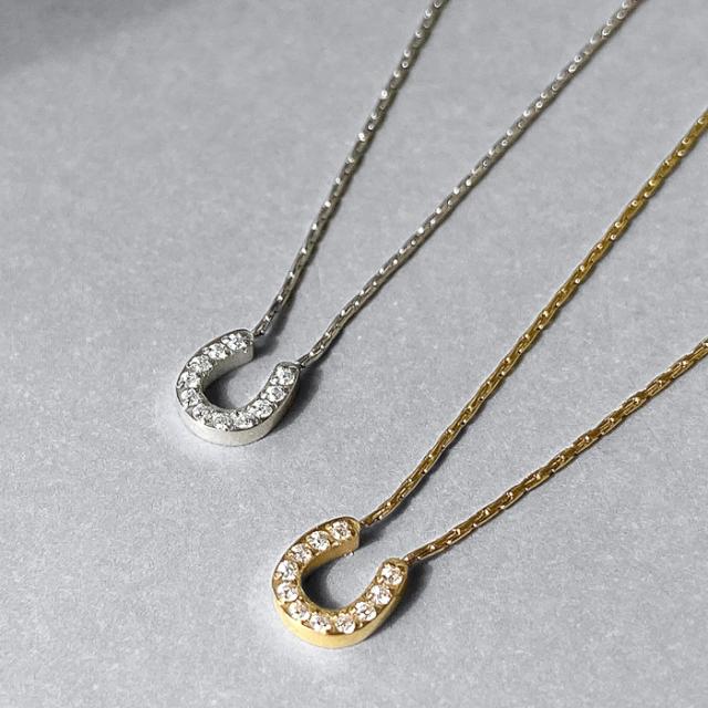 送料無料 ストーン付ミニ馬蹄ステンレスネックレス ホースシュー U形 金属アレルギー サージカルステンレス アレルギ対応 レディース 女性 つけっぱなし ペンダント 小さい シルバー ゴールド ネックレス