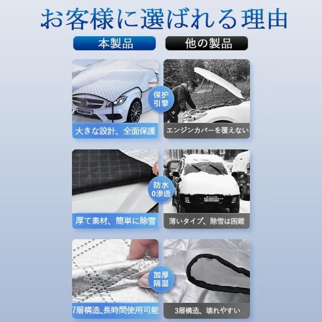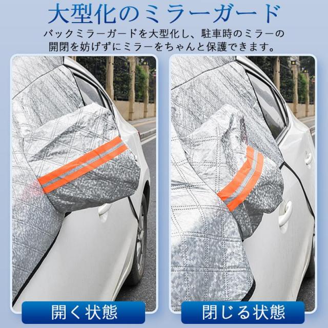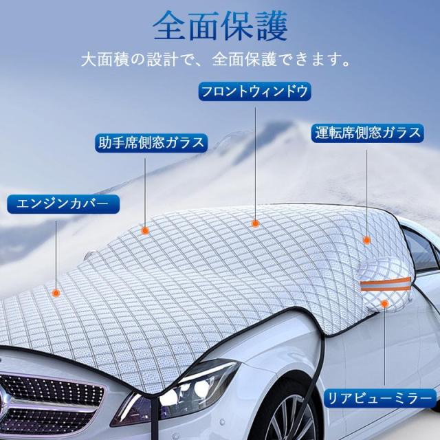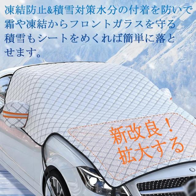 フロントガラスカバー 車用 車凍結防止シート フロントカバー 雪対策グッズ 四重厚手 保護カバー 折り畳み 防水 簡単取付 盗難防止 車種汎用