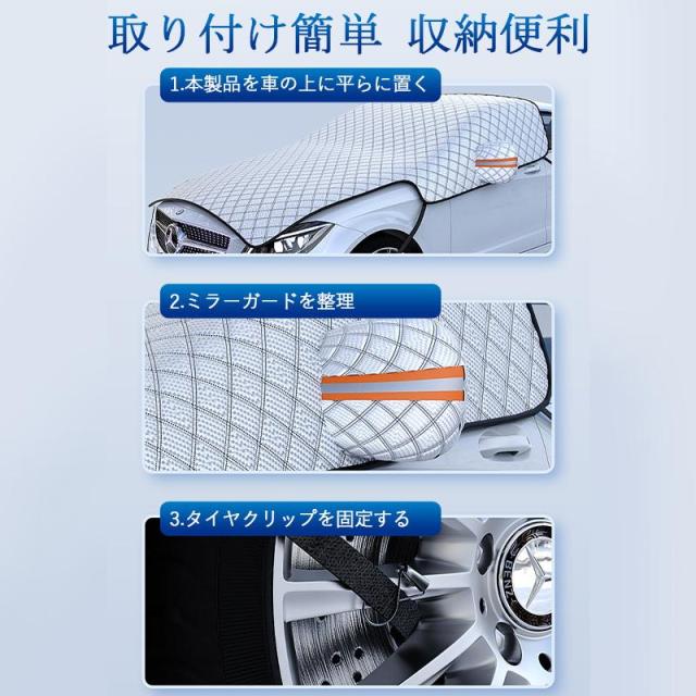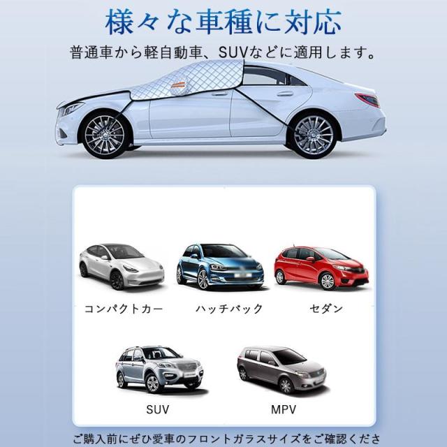 【キーワード】 フロントガラスカバー 車 車用 凍結防止シート 汎用 軽自動車 SUV 車サンシェード フロントガラス保護カバー 厚型 日よけ 霜よけ 凍結防止 雪 雨 落葉 鳥の糞対策 反射警告テープ付き カーシェード サンシェイド 四季兼用