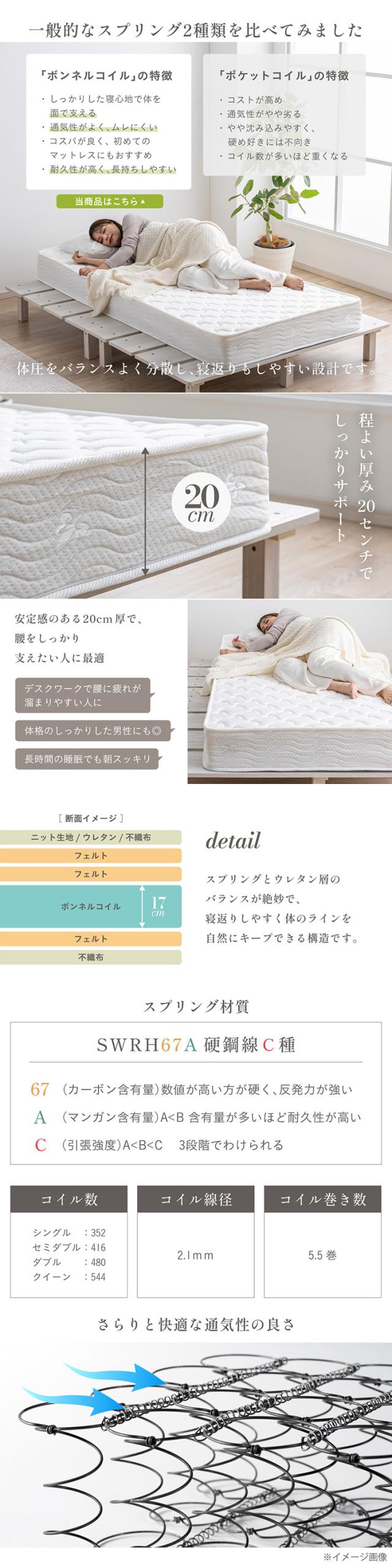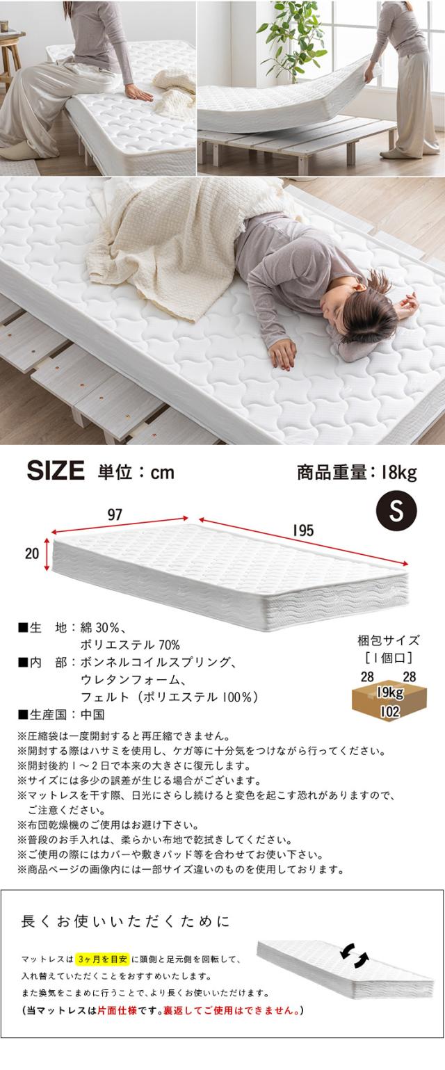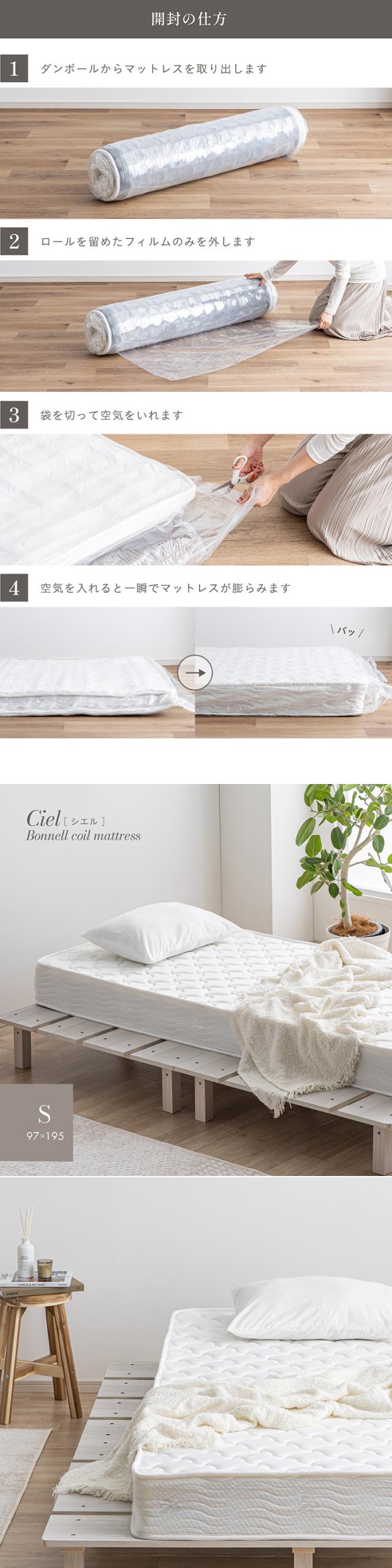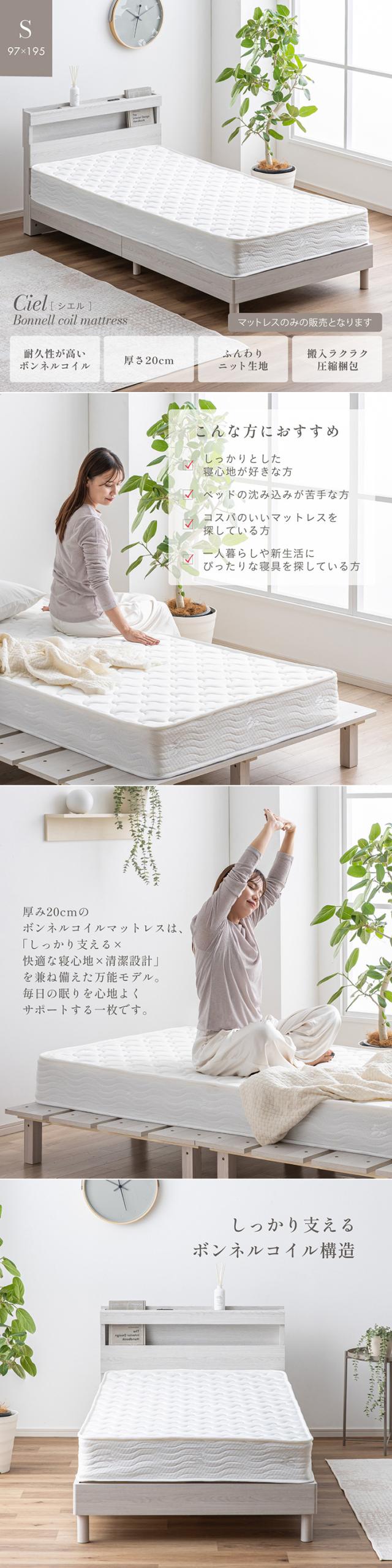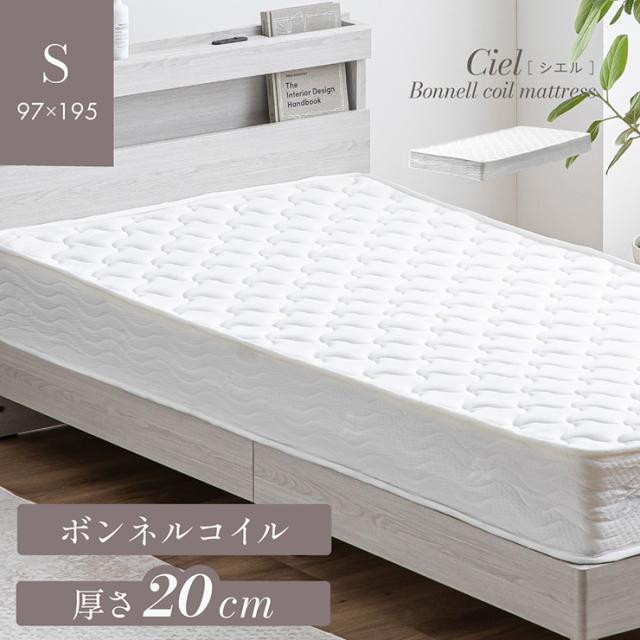 マットレス 高反発 シングルサイズ ボンネルコイルマットレス 厚さ20cm Ciel(シエル) 敷布団 敷き布団 おしゃれ ベッドマット ベッドマットレス コイルマットレス ボンネルマットレス 硬め 圧縮梱包