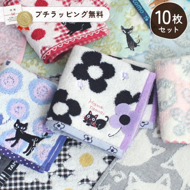 ハンカチ 10枚セット レディース キャラクター 猫 雑貨 まとめ買い ネコ ギフト かわいい おしゃれ 子供 キッズ 綿100% ノアファミリー 猫の日 ネコの日 ねこの日 ポイント消化