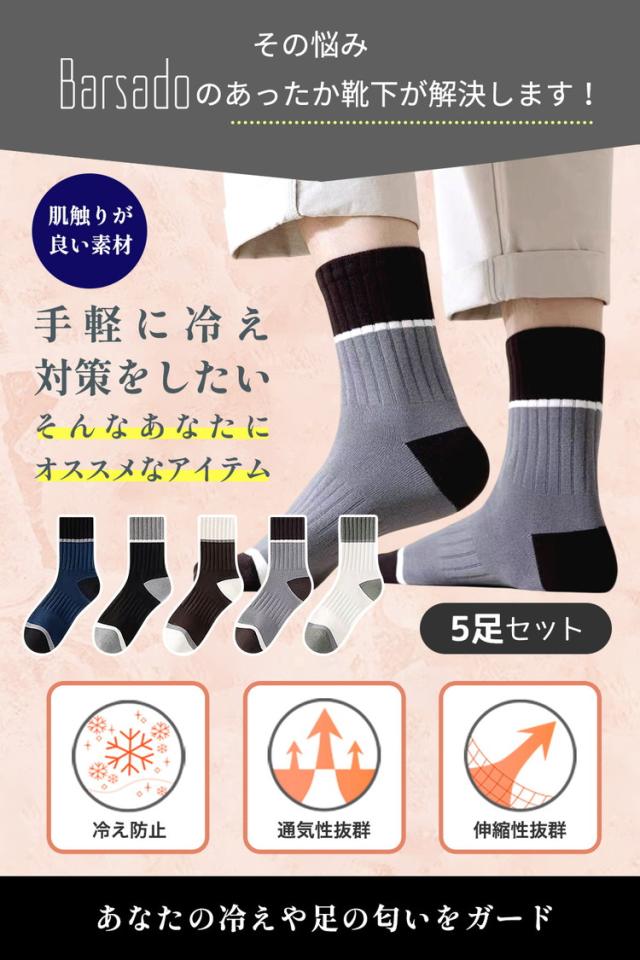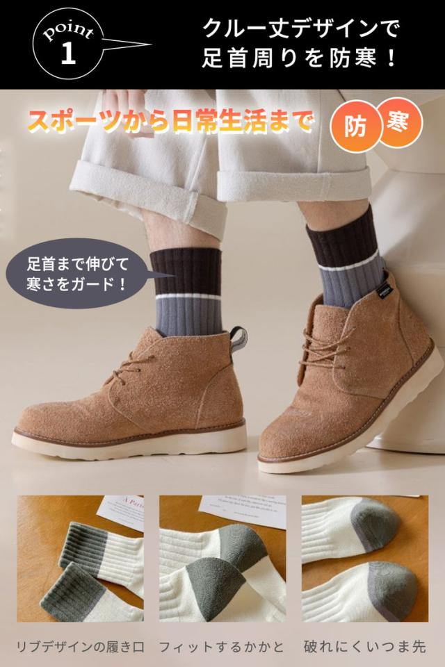 靴下 メンズ あったか靴下 5足セット 暖かい あったかい靴下 メンズ靴下 スキー靴下 セット 防寒 温かい靴下 冬 厚手 おしゃれ 黒色 ブラック 紺色 ネイビー 灰色 グレー