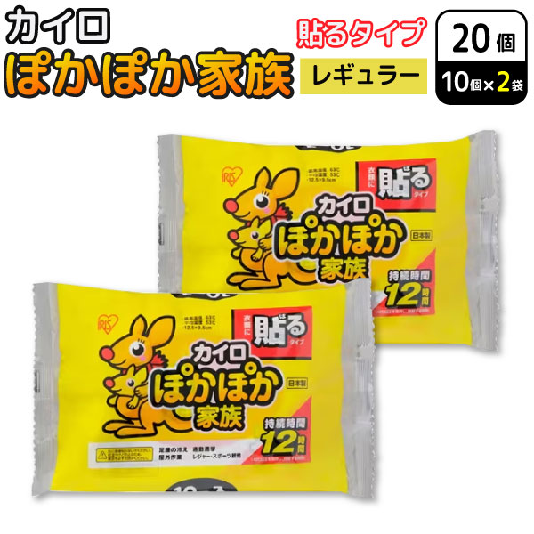 アイリスオーヤマ ぽかぽか家族 貼る カイロ レギュラー 10個入×2セット(20個) 使い捨てカイロ 防寒対策 通勤 通学 冷え性