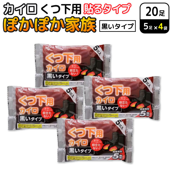 アイリスオーヤマ ぽかぽか家族 貼る くつ下用 カイロ 黒いタイプ 5足入×4セット(20足) 使い捨てカイロ 防寒 冷え性 靴下