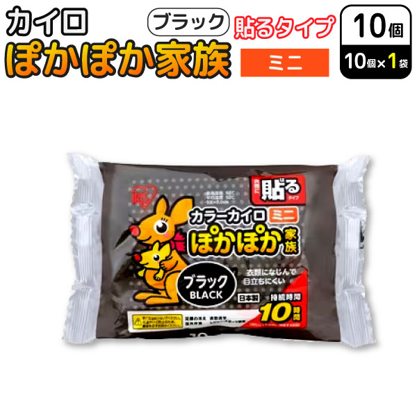 アイリスオーヤマ ぽかぽか家族 貼る カイロ ミニ ブラック 10個入 使い捨てカイロ 【メール便可】 防寒対策 通勤 冷え性