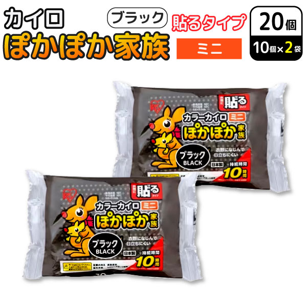 アイリスオーヤマ ぽかぽか家族 貼る カイロ ミニ ブラック 10個入×2セット(20個) 使い捨てカイロ 防寒対策 通勤 冷え性