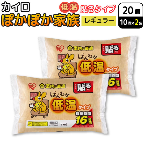 アイリスオーヤマ ぽかぽか家族 貼る カイロ ほんわか 低温タイプ レギュラー 10個入×2セット(20個) 使い捨てカイロ 防寒対策
