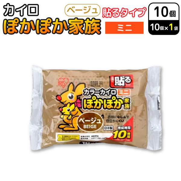 アイリスオーヤマ ぽかぽか家族 貼る カイロ ミニ ベージュ 10個入 使い捨てカイロ 【メール便可】 防寒対策 通勤 冷え性