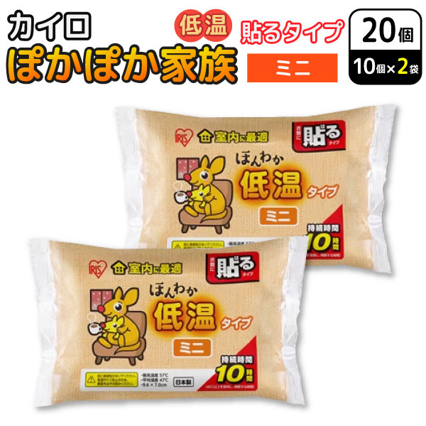 アイリスオーヤマ ぽかぽか家族 貼る カイロ ほんわか 低温タイプ 【メール便可】 ミニ 10個入×2セット(20個) 使い捨てカイロ 防寒対策