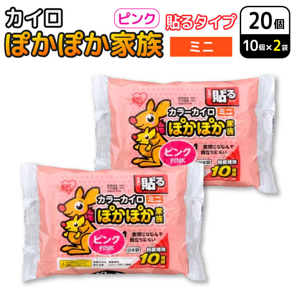 アイリスオーヤマ ぽかぽか家族 貼る カイロ ミニ ピンク 10個入×2セット(20個) 使い捨てカイロ 【メール便可】 防寒対策 通勤 冷え性