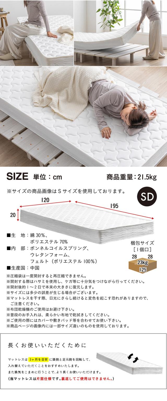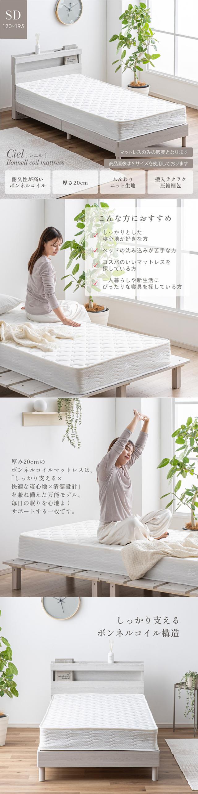 マットレス 高反発 セミダブルサイズ ボンネルコイルマットレス 厚さ20cm Ciel(シエル) 敷布団 敷き布団 おしゃれ ベッドマット ベッドマットレス コイルマットレス ボンネルマットレス 硬め 圧縮梱包