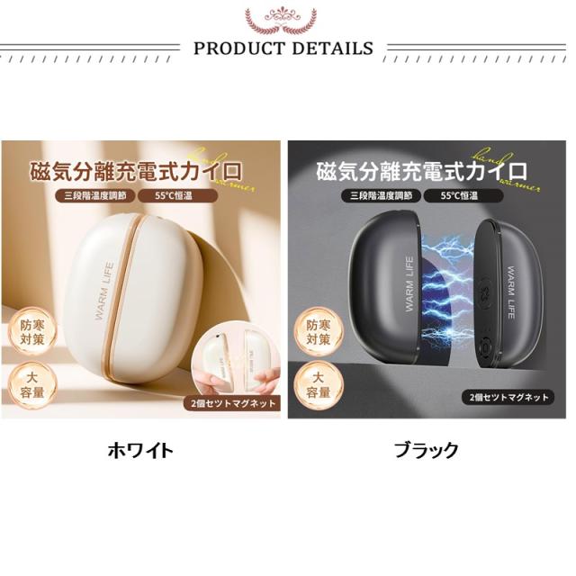 ホワイト即納 充電式カイロ 充電カイロ 電気カイロ 携帯カイロ 電気あんか カイロ 小型 3階段温度調節 速暖 磁気分離式設計 ハンドウォマー 防寒グッズ 大容量