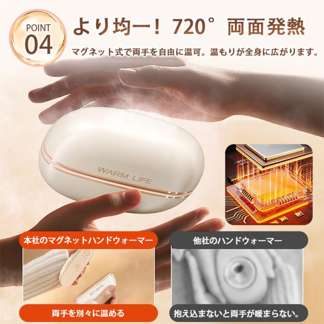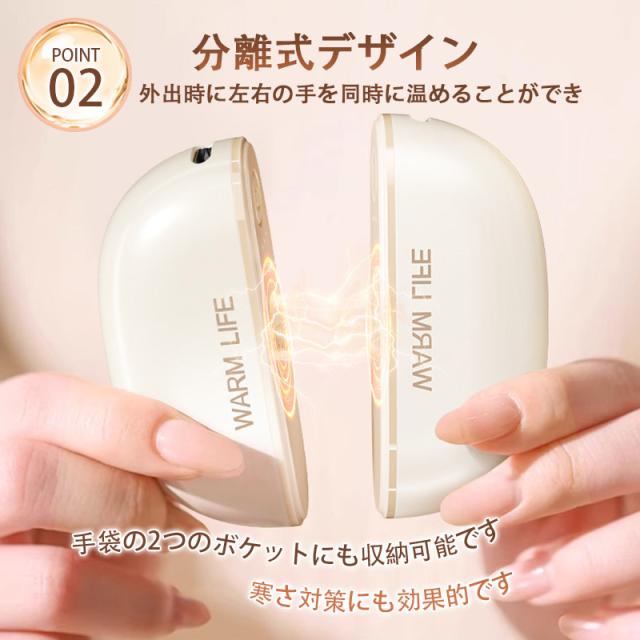 【磁気分離式デザイン】外出時に左右の手を別々に暖められるほか、片方だけ持ち歩いて荷物がかさばっても握りやすいです。冷え性の方や寒さに弱い方が冬を快適に過ごすために最適な防寒グッズ