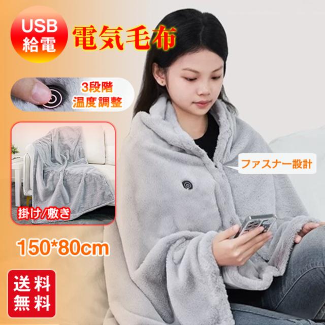 電気毛布 USB給電 洗える シングル ひざ掛け 3段階温度調節 敷き毛布 掛け 毛布 ブランケット 150×80cm 電気ブランケット 掛け敷き 速暖 発熱 暖かい おしゃれ 電気敷き毛布 冬 オフィス 防寒対策
