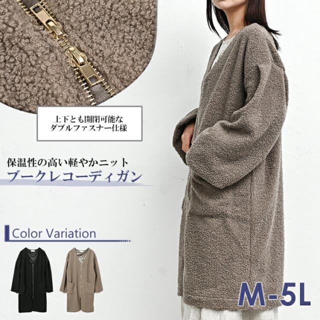 大きいサイズ レディース ブークレニットコーディガン 長袖 ダブルZIP 防寒 ボアコート アウター M/LL/3L/4L/5L ゆったりサイズ ぽっちゃり女子 プラスサイズ