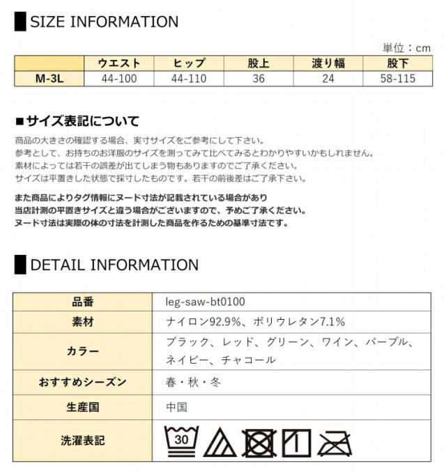 M-3L:ウエスト44-100 ヒップ44-110 股上36 渡り幅24 股下58-115