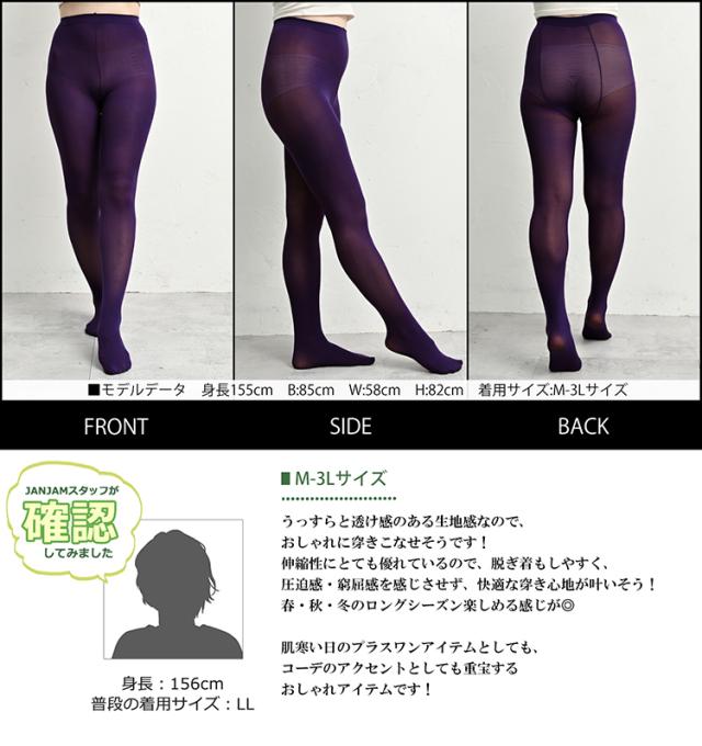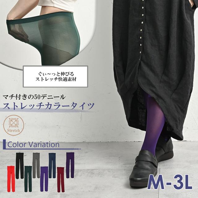 大きいサイズ レディース カラータイツ メール便対応 ストレッチ 50デニール レッグウェア インナー M-3L ゆったりサイズ ぽっちゃり女子 プラスサイズ