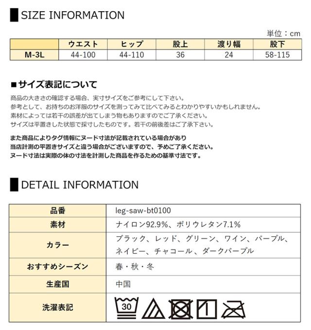 M-3L:ウエスト44-100 ヒップ44-110 股上36 渡り幅24 股下58-115