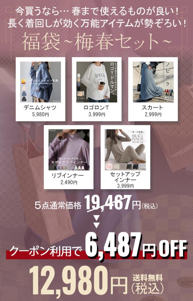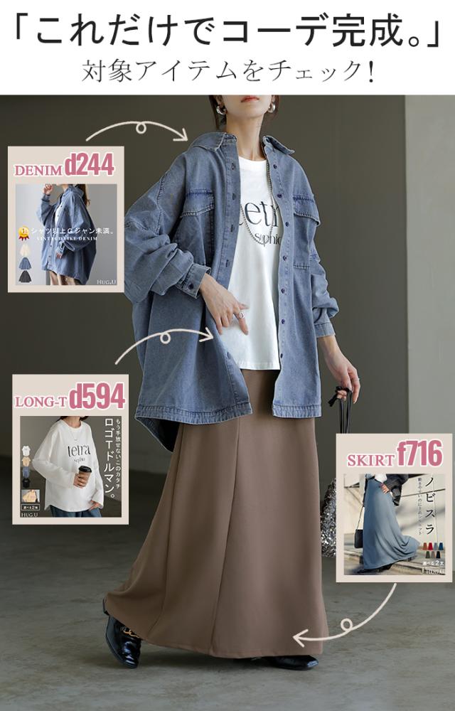 早い者勝ち!【 選べる カラー 2026 福袋 】5点セット コーデセット レディース デニム シャツ ロンT ロゴ スカート シアー インナー 人気 セット 上下セット 上下 トップス ボトムス 長袖 チュニック 長い Aライン 大きいサイズ あったか ブルー 黒 秋 冬 HUG.U
