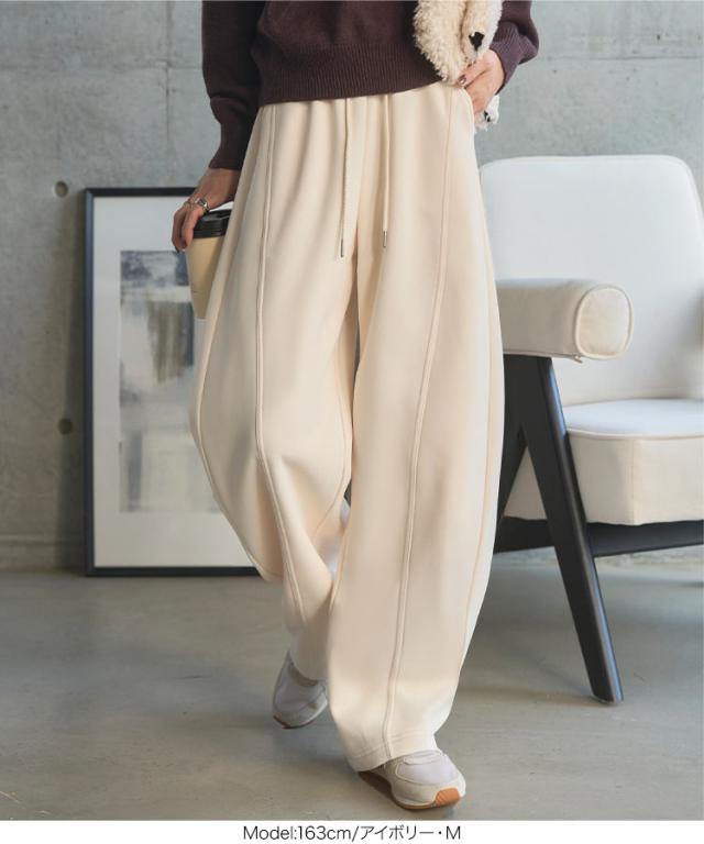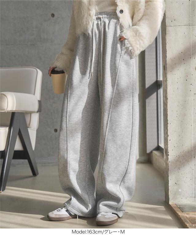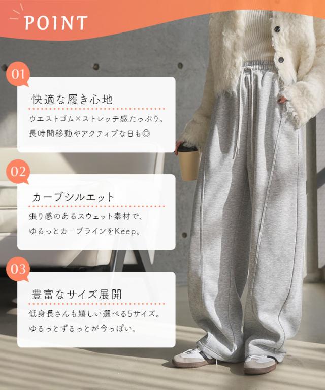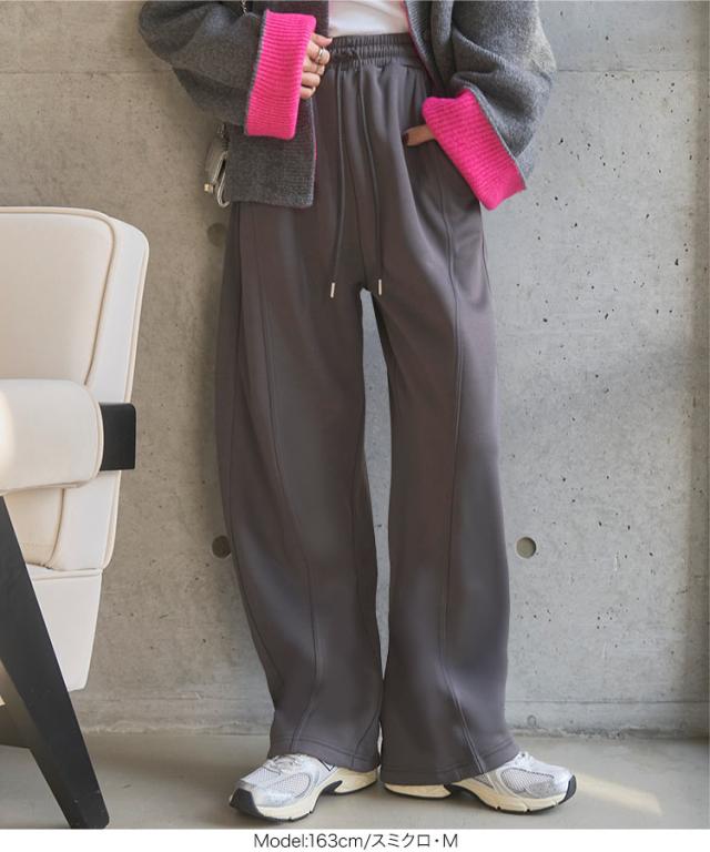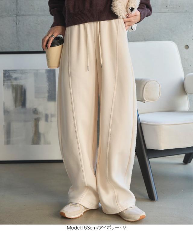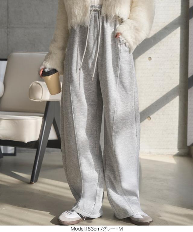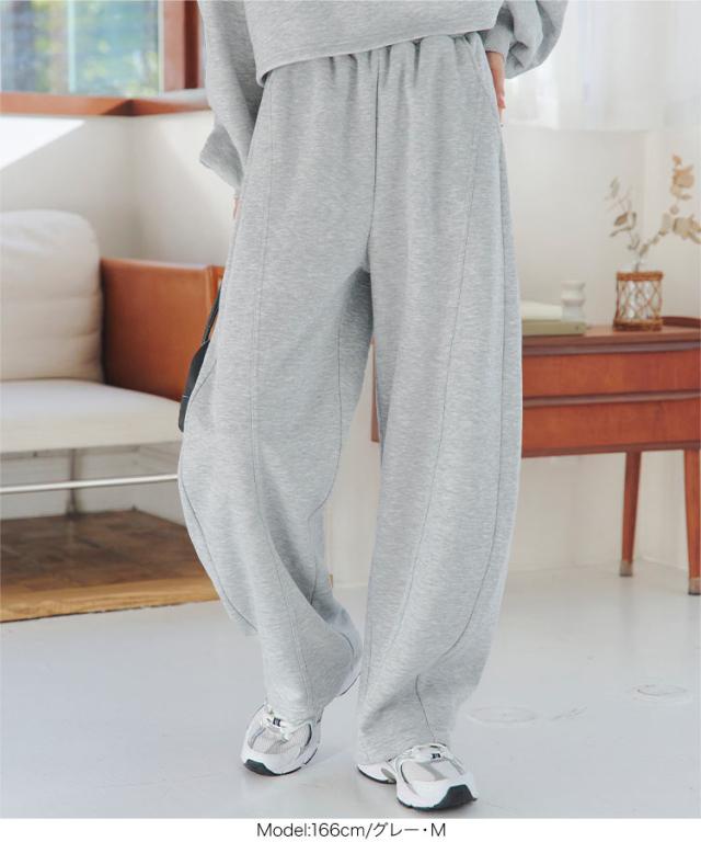 [ 裏ボア ] 暖かスウェットカーブパンツ M4313 入荷済 レディース 20代 30代 40代 裏ボア 裏起毛 冬パンツ 暖かボトム スウェット スエット カーブパンツ 裏毛 バレルレッグ 低身長 セットアップ